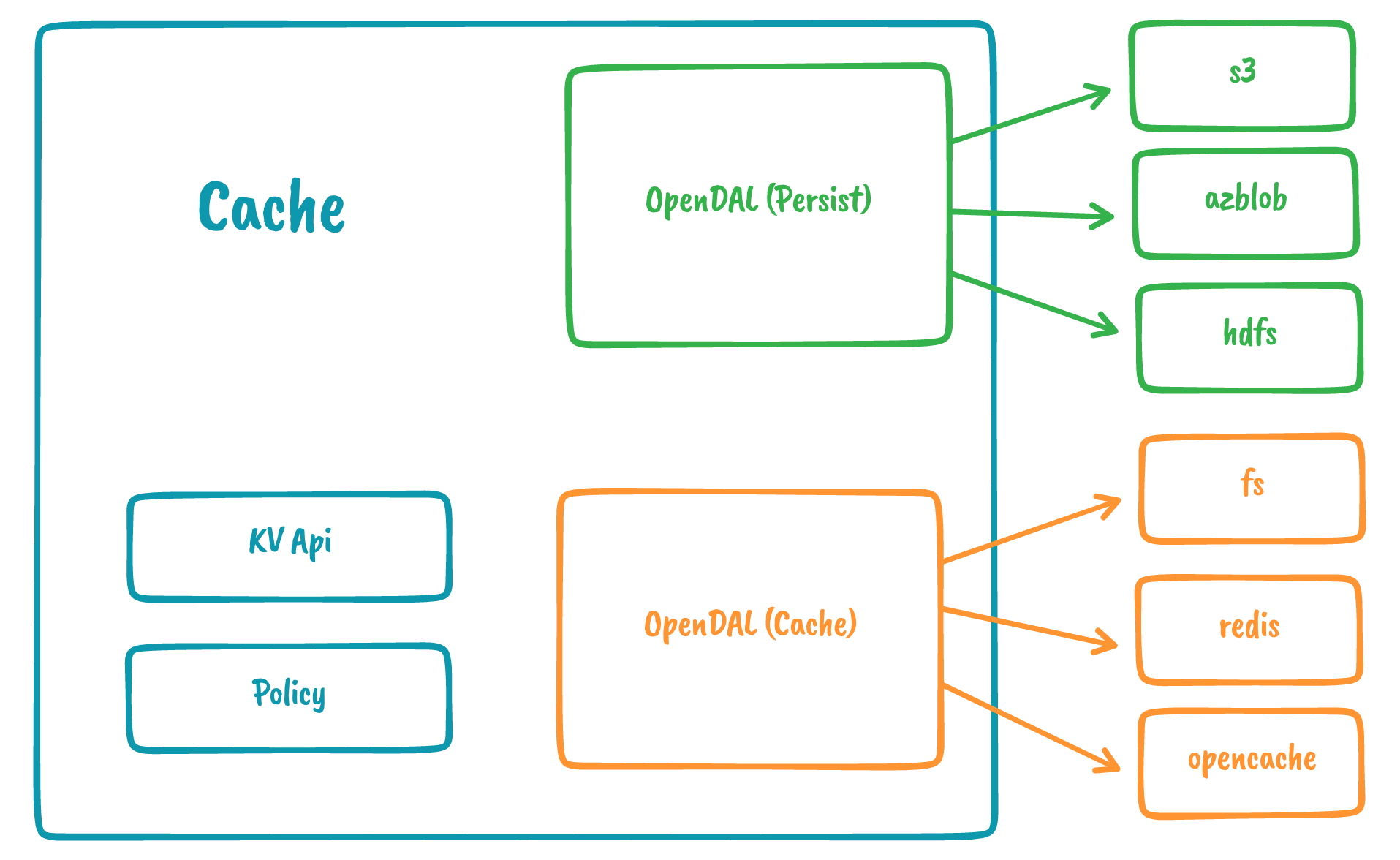 OpenCache is an ongoing work from databend community to build a distributed cache services. OpenDAL will implement native support for OpenCache once its API is stable. After that, users can deploy and use OpenCache as cache storage.